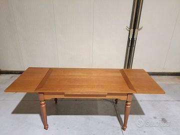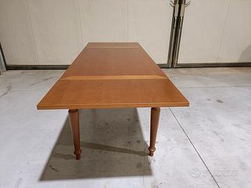 Tavolo ciliegio di dimensione 140x80x76 (cm), dotato di due allunghe estraibili di dimensioni 40x80 (cm).