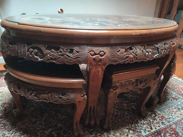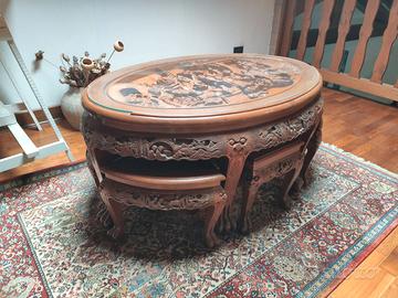 Vendo splendido tavolo basso ovale in legno massello, realizzato artigianalmente con finissimi intagli a mano.
