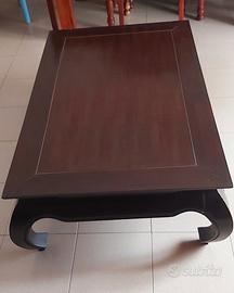 Grande tavolo basso da salotto in legno massello color noce scuro. Misure cm 120×75×38