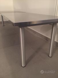 Edra Tavolo "Scacco " in acciaio con dettaglio legno venghe' . Misure 190x47,5 H 42