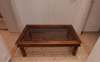 Tavolo basso in legno realizzato da una finestra indiana, misure 70x140