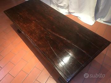 Tavolo per salotto artigianale rustico, stile "fratino " in legno massello di castagno e ulivo, interamente fatto a mano, perfetto anche in un contesto di arredamento moderno. Dimensioni: lungo cm. 165 , largo cm. 70, alto cm. 45.