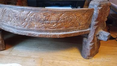 Vendesi splendido tavolino tondo da salotto stile indiano in legno massello. Acquistato in un negozio etnico, si tratta di una macina utilizzata per fare la farina in india. Diametro cm 80. Trasporto a carico dell'acquirente. Roma zona portuense/Ramazzini