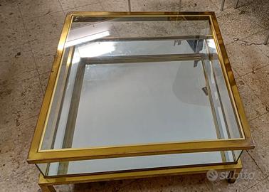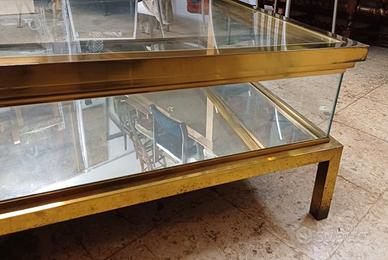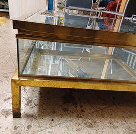 tavolo basso vintage ottone/vetro-espositore