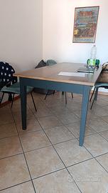 Tavolo 8 posti, gambe grigio antracite e top in legno naturale, con due cassettini.