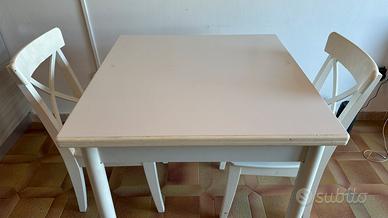 Tavolo bianco allungabile 80x80→160 + 2 sedie