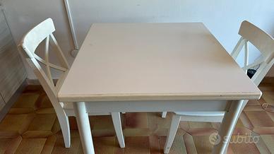 Vendo tavolo bianco allungabile da 80x80 a 160 cm con 2 sedie. Struttura solida, ideale per cucina o casa studenti. Prezzo trattabile.