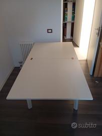 Vendo *tavolo da cucina/soggiorno bianco*, apribile e *in buone condizioni generali*. Presenta un piccolo difetto sul bordo che è stato *riparato in modo stabile* (visibile in foto), ma il tavolo è *perfettamente utilizzabile*.
