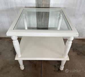 Tavolo bianco con vetro a due ripiani usato