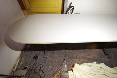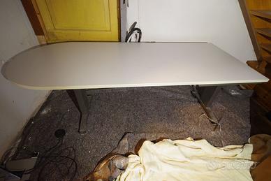 2 metri di lunghezza, alto e largo circa 75 cm. Gambe di metallo, canalette per cavi sotto il tavolo. Facilmente smontabile, ma ci vuole un buon bagagliaio. Posso occuparmi della consegna se in zona Padova/Rovigo.