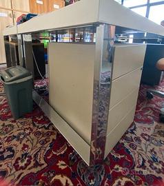 Vendo tavolo legno bianco, gambe in ferro lung.210xlargh.95xalt.77 - €. 80,00 Disponibilità 2 tavoli 80,00 cad. Ideali x soggiorno o ufficio. Per visione e ritiro orari ufficio a Vimercate