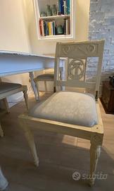 Ottima solidità, struttura perfetta, stile francese/ boho/shabby,) come da foto. Necessita solo di una carteggiata e riverniciata sul piano d’appoggio dove la vernice si è sbeccata in un piccolo punto. Il prezzo ne ha già tenuto conto. Eventuali 4 sedie color crema a 100 euro totali in più. Ritiro a Milano viale dei Missaglia. Secondo piano senza ascensore, vano scala comodo per trasporto a terra. 179 x 90 cm