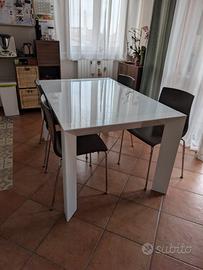 Piano in vetro, molto elegante, con la possibilità di allungare con due prolunghe (in laminato).