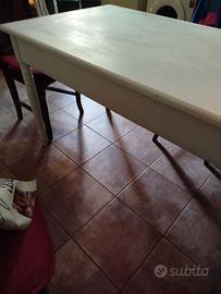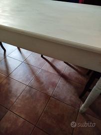 Tavolo in legno bianco non allungabile in legno non è rotto ma ha bisogno di una carteggiata e pittura...misure 148 per 48