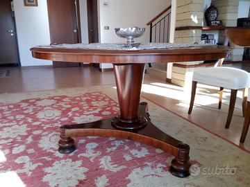 Tavolo Biedermeier meta’ ‘800, in massello di noce, finitura noce scuro, diametro 130 cm, recentemente restaurato. Prezzo poco trattabile.