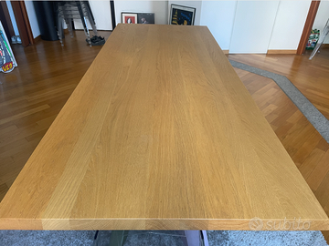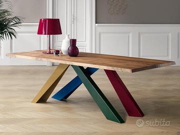 Tavolo da pranzo Big Table di Bonaldo con gambe colorate, in versione fissa, con piano in noce americano. Misure 300 x 108 cm. Ritiro a Milano Viale Monza, no spedizione