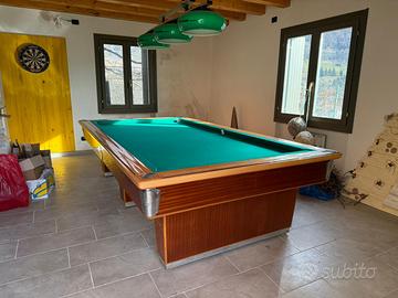 Tavolo da biliardo anni 90 di Pietro Mari con tappeto rifatto nel 2012 e mai usato A corredo luci Porta stecche, stecche e segna punti. Ritiro a mano