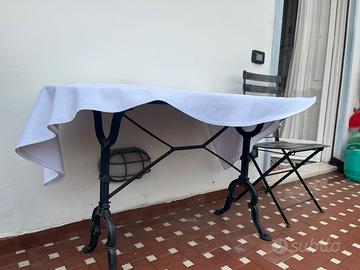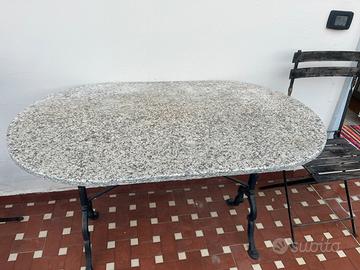 Tavolo bistrot in ferro con top ovale in granito x esterno e rettangolare in marmo di carrara ( in cantina ) opzionale addizionale