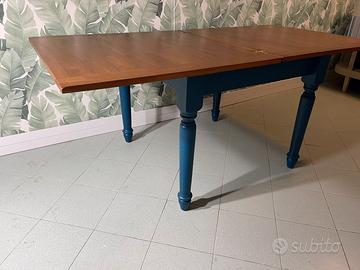 Mobile rivisitato color blu . Tavolo quadrato blu allungabile tavolo rettangolare blu allungabile misura 100x100/100x200 Si trova a Santa Marinella Roma possibilità di consegna nel lazio e alcune città della toscana