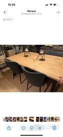 Tavolo rovere 1,60 cm con prolunga ( fino a 8 perosne ) con tre sedie tipo poltrone colore grigio antracite