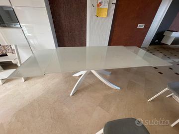 Tavolo Bontempi modello Artistico 160x90 allungabile 200-240 in cristallo bianco lucido e struttura in metallo laccato bianco