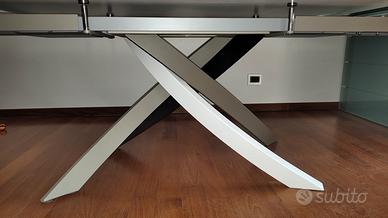 Bontempi Casa – modello Artistico allungabile, con base incrociata in acciaio tre colori e piano in vetro extra White (effetto satinato).