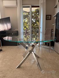 Tavolo Bontempi modello Barone, fisso rotondo, 120cm diametro, struttura in metallo cromo, top in cristallo trasparente extrachiaro