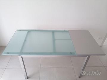 Vendo tavolo modello Mago marca Bontempi come da foto, struttura acciaio satinato e piano in vetro temprato. misure: chiuso 120 x 80 ; aperto 170 x 80 cm.