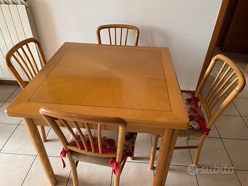 Tavolo 1metro per un metro allungabile a 2 metri per 1 con quattro sedie