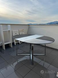 • Condizioni: Il tavolo è usato ma in buone condizioni generali. La struttura cromata è solida e il meccanismo di allunga funziona perfettamente.