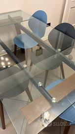 Tavolo CALLIGARIS in cristallo dimensioni 160 x 90 ed allungabile a 240. Completo di quattro sedie anch’esse della CALLIGARIS , vendo per trasferimento a metà prezzo rispetto quanto pagato