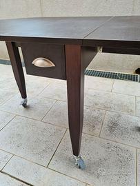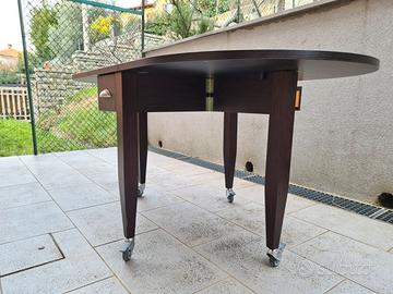 TAVOLO CALLIGARIS CONSOLE OVALE - 35826904 Tavolo design buondì Calligaris originale con marchio originale Tavolo ovale chiudibile a consolle ovale o semiovale o a mensola per occupare poco spazio. richiudubile pieghevole felocementeo, molto pratico con ruote eventualmente bloccanti colore wenge NERO molto solido in legno ottima fattura in ottimo stato, praticamente inutilizzato e lasciato con una coperta sopra per non rovinarlo misure da chiuso 90 x 35 misure aperto solo un lato 100 aperto totalmente 165 ritiro a Trieste, livello strada, parcheggio facile