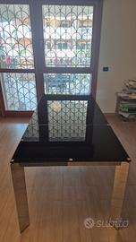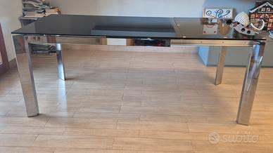 Vendesi tavolo Calligaris in cristallo, di colore nero, con gambe in metallo. Dimensioni (cm): 130 x 75 x 85 (L × H x P) Allungabile a 190cm L'apertura del tavolo è semplice ed immediata, sfruttando il meccanismo di apertura/chiusura guidato. Ritiro a carico dell'acquirente.