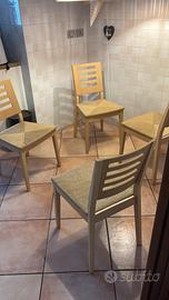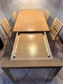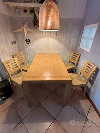 Vendo tavolo Calligaris per la cucina, legno chiaro, rettangolare, allungabile, robusto, moderno unitamente a 4 sedie a corredo con seduta ampia in paglia. Buone condizioni, in vendita per rinnovo arredamento.