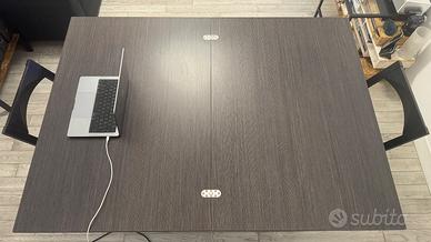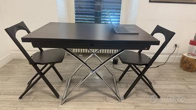 Tavolo Calligaris “Magic-J”, trasformabile e regolabile in altezza e dimensioni. Ideale sia come tavolino da salotto che come tavolo da pranzo.