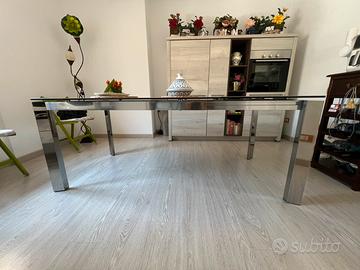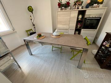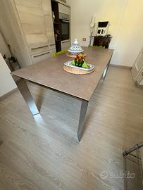 Tavolo allungabile cm 130-190x85 da 8 posti con struttura acciaio cromato e piano in ceramica color nocciola. Ottime condizioni