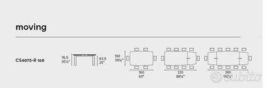 Lunghezza 160 (Allungabile a 220 oppure 280) - Profondità 100 - H 76,5 cm
