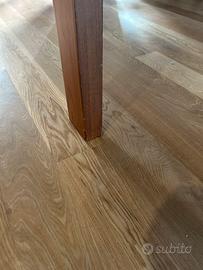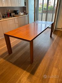 Tavolo allungabile in finitura noce. Dimensioni 160/220 x 90 cm. Segni visibili di usura alla base estrema delle gambe. Tavolo utilizzato sempre da chiuso, perciò la parte estraibile di 60 cm risulta piu scura.