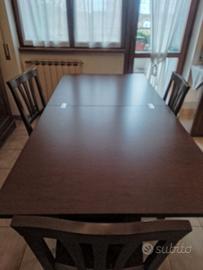 Tavolo Calligaris in Noce scuro, mis 90x 90 chiuso, aperto con apertura a libro 90 x180, con 4 sedie, praticamente nuovo, usato pochissimo , prezzo del nuovo € 650,00 in vendita a € 300 trattabili, per poterlo ritirare dal 20 marzo zona San Filippo Neri