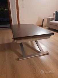 Tavolo Calligaris in wenge e metallo alzabile e trasformabile. Si può alzare e abbassare e raddoppia la lunghezza, passando da 4 a 6 posti a sedere.