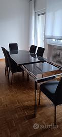 vendo tavolo Calligaris 160*85, allungabile a 220 in vetro color fumé e telaio in acciaio compreso di 6 sedie (in regalo)