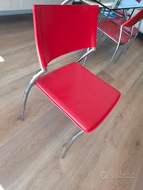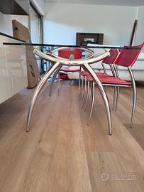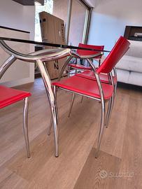 Vendo splendido tavolo Calligaris in cristallo e gambe in acciaio, completo di 4 sedie in cuoio e acciaio. No perditempo no spedizione.