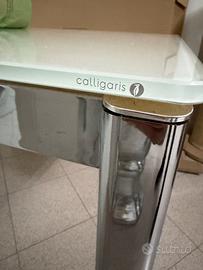 Tavolo CALLiGARIS rettangolare in vetro bianco allungabile usato misure chiuso 110x70 allungato facole da aprire come da foto con parte in legno grigio 160x70 solido , da aperto le zampe non ingombrano la seduta. No sedie (si trova a mestre terraferma)