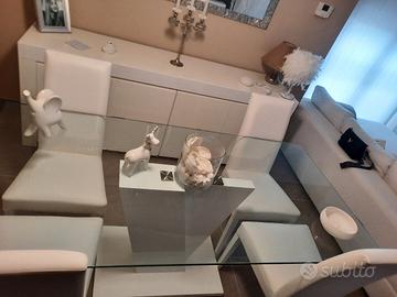 tavolo per 8 persone in vetro con piede bianco. nuovo. prezzo non trattabile.