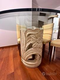 Tavolo rotondo in cristallo con basamento centrale + 4 sedie