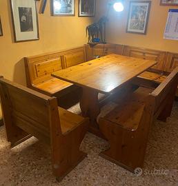 Intero arredo composto da tavolo tipo fratino cassapanche credenza e mobile bar tutto in massello di legno, no trucciolato, le cassapanche sono apribili ottime come ripostigli