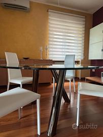 Tavolo cattelan italia in vetro ray + 4 sedie in pelle bianca Bonaldo