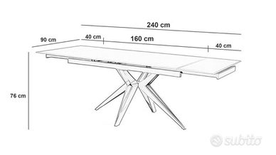 QUESTO ARTICOLO RIENTRA NEL "BONUS MOBILI" CON DETRAZIONE DEL 50% DELLA SPESA (bonus legato alla ristrutturazione dell' immobile) A catturare l’attenzione è la forza espressiva di questo tavolo allungabile in stile contemporaneo e industrial. Il suo design è caratterizzato dall’elegante top realizzato in ceramica che si abbina con gusto alla solida base in metallo nero. Nelle sue tre versioni offre tante possibili combinazioni tra le finiture del piano rettangolare e le forme della base, assecondando l’espressione e il gusto personale e riflettendo lo spirito del contesto nel viene inserito. Grazie alla sua estensibilità riesce ad ospitare fino a 10 persone, e diventa l’alleato perfetto nella creazione degli spazi conviviali anche all’interno degli spazi ristretti. CARATTERISTICHE PRODOTTO • Tavolo allungabile • Top in ceramica marmo nero • Top opaco • Quattro gambe a stella in metallo nero opaco • Allunghe a scomparsa in ceramica marmo nero Materiale Top: Ceramica Marmo Nero Gambe: Metallo Nero Opaco Allunghe: Ceramica Colore Top: marmo nero opaco gambe: nero opaco Dimensioni ingombro 90cm X 160/240 cm H. 76cm Misure prodotto Lunghezza: 160/240 cm Profondità: 90 cm Altezza: 76 cm Peso netto 123 Kg Siamo aperti tutti i giorni della settimana dal lunedi al sabato dalle 8,30 alle 12,30 e dalle 15,30 alle 19,30 Domenica pomeriggio SOLO SU APPUNTAMENTO CI TROVIAMO IN VIA CAMPIGLIONE ,40 A BASTIA UMBRA (PG) NT snc Mostra numero ///// Mostra numero NT SNC DAL 1985