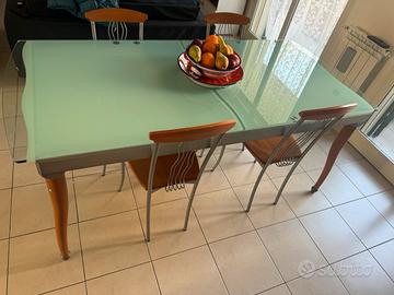 Tavolo da pranzo Ciacci in vetro allungabile (180 → 220 cm) Vendo elegante tavolo da pranzo marca Ciacci, dal design moderno e raffinato. Piano in vetro satinato con struttura in metallo, ideale per cucina o sala da pranzo. 📏 Dimensioni: - Lunghezza: 180 cm (allungabile fino a 220 cm) - Larghezza: 90 cm Il tavolo è allungabile, perfetto per ospitare più persone quando necessario, mantenendo allo stesso tempo un ingombro contenuto nella quotidianità. ✔️ Condizioni: buone, usato con cura ✔️ Struttura solida e stabile ✔️ Design moderno, si adatta facilmente a diversi ambienti 💰 Prezzo: 800 € trattabili Vendita con sedie (se interessati). Contattami per maggiori informazioni o per venire a vederlo