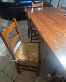 tavolo allungabile per 8/10 persone misure 2m x 1 m allungabile fino a 2.80. In legno di ciliegio eseguito artigianalmente + 6 sedie e 4 sgabelli tutte impagliate..ottimo stato, vendo x cambio arredamento. prezzo trattabile